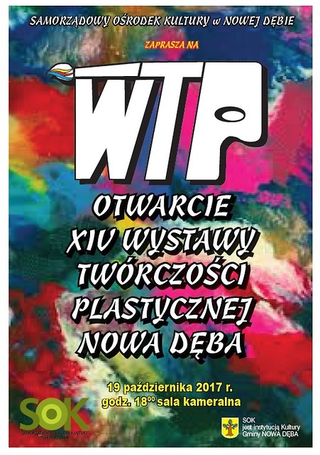 Zapraszamy na otwarcie XIV Wystawy Twórczości Plastycznej, które odbędzie się 19 października 2017 r. godz. 18:00 w sali kameralnej Samorządowego Ośrodka Kultury.