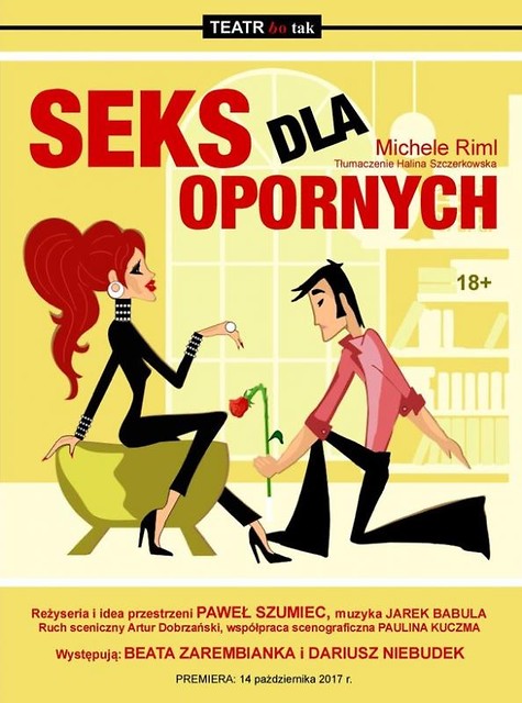 Zapraszamy 5 grudnia 2017 r. (wtorek) o godz. 19:00 do sali widowiskowej SOK. To idealny pomysł na prezent mikołajkowy dla "drugiej połówki" - dlaczego? Bohaterowie spektaklu - Alice i Henry - małżeństwo z 25-letnim stażem, spędzają weekend w najmodniejszym hotelu w mieście, aby tam, przy pomocy poradnika "Seks dla opornych", ożywić swoje życie intymne i odnaleźć dawną namiętność. Czy ta terapia przyniesie oczekiwane rezultaty i pokona rutynę w ich małżeństwie, czy raczej spowoduje jeszcze większy żal i rozczarowanie, a może pozwoli docenić to, co w związku dwojga ludzi najważniejsze, czyli bliskość, zaufanie i poczucie bezpieczeństwa?