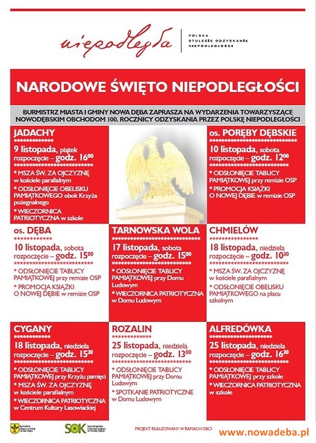 Burmistrz Miasta i Gminy Nowa Dęba zaprasza na wydarzenie towarzyszące nowodębskim obchodom 100. rocznicy odzyskania przez Polskę Niepodległości, które odbędzie się 9 listopada (piątek) w Jadachach.