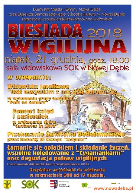 Serdecznie zapraszamy wszystkich mieszkańców miasta i gminy do kultywowania wieloletniej tradycji wspólnego obchodzenia tego szczególnego święta. Darmowe wejściówki do odebrania w sekretariacie SOK od 17 grudnia 2018 r.