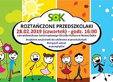 Zapraszamy na kolejną odsłonę imprezy dla przedszkolaków. Będą to prezentacje artystyczne (taniec i piosenka) dzieci z nowodębskich placówek. Grupy 5 latk-ów wystąpią 28 lutego 2019 r. o godz. 16:00 w sali widowiskowej SOK. Impreza ma na celu wymianę pomysłów i doświadczeń w zakresie upowszechniania kultury tanecznej wśród dzieci, kształcenie twórczego i aktywnego modelu osobowości dziecka, integrację dzieci przez taniec. Każde z przedszkoli otrzyma upominki ufundowane przez Samorządowy Ośrodek Kultury. Przegląd zakończy licytacja zorganizowana i przygotowana przez Przedszole nr 5 z której dochód zostanie przeznaczony dla Antosi.