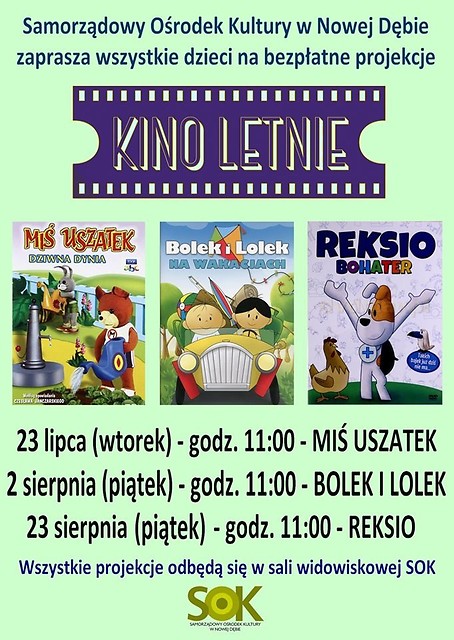 Zaprazamy wszystkie dzieci na wakacyjne kino letnie. 23 lipca o godz. 11:00 w Kinie Metalowiec wyświetlimy bezpłatnie bajkę: "MIŚ USZATEK"