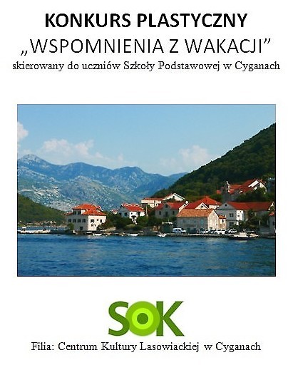 Samorządowy Ośrodek Kultury w Nowej Dębie wraz z Filią: Centrum Kultury Lasowiackiej zaprasza do udziału w konkursie "Wspomnienia z wakacji". Konkurs skierowany jest do dzieci Szkoły Podstawowej w Cyganach i dotyczy pracy plastycznej wykonanej dowolną techniką, dowolnego formatu, przedstawiającą najciekawsze lub najśmieszniejsze w ocenie uczestnika wydarzenie z wakacji.
