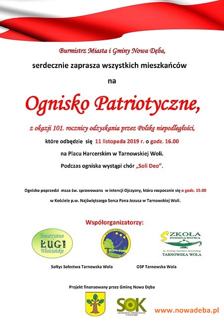 Organizator: Burmistrz MiG Nowa Dęba, Towarzystwo Włościańskie ŁUGI, 2 Szczep Harcerski Tarnowska Wola, SP w Tarnowskiej Woli