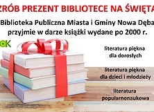 Biblioteka Publiczna Miasta i Gminy Nowa Dęba przyjmie w darze książki wydane po 2000 r. (literatura piękna dla dorosłych, literatura piękna dla dzieci i młodzieży, literatura popularnonaukowa).