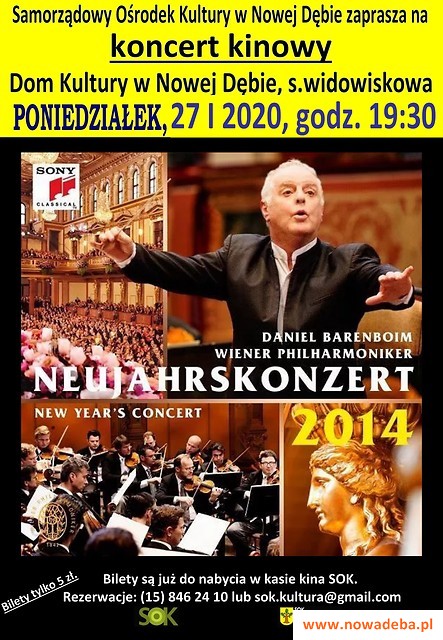 Samorządowy Ośrodek Kultury w Nowej Dębie serdecznie zaprasza na noworoczny koncert kinowy. Projekcja odbędzie się w poniedziałek, 27 stycznia 2020 r. o godz. 19:30.