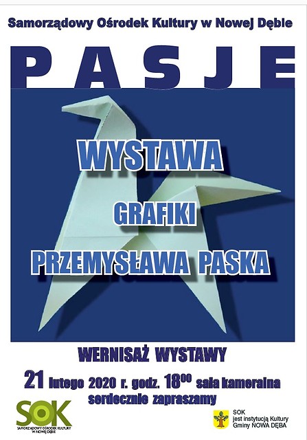 Samorządowy Ośrodek Kultury w Nowej Dębie zaprasza na wystawę grafiki Przemysława Paska „PASJE” 21 lutego 2020 r. o godz. 18:00 w sali kameralnej SOK.