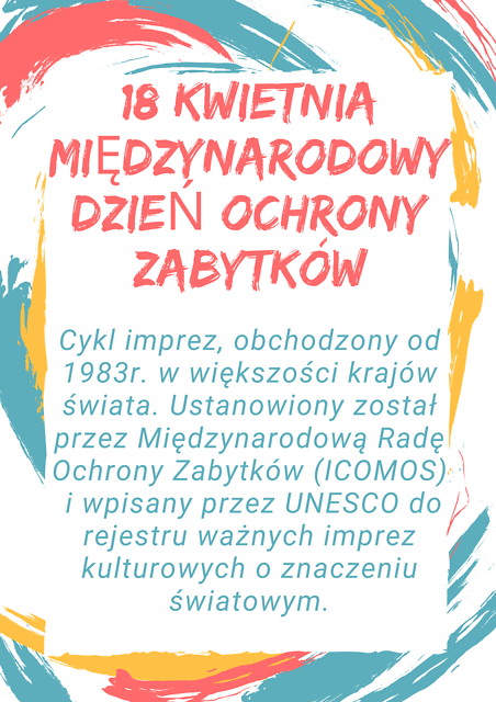 Celem Międzynarodowego Dnia Ochrony Zabytków, obchodzonego 18 kwietnia, jest przede wszystkim przybliżenie społeczeństwu problematyki dziedzictwa kulturowego. W Polsce ideą obchodów jest zaprezentowanie zabytków mających szczególne znaczenie dla dziedzictwa światowego i wielokulturowości w naszym kraju oraz nagrodzenie osób, które w szczególny sposób przyczyniły się do ochrony zabytków z różnych dziedzin. Międzynarodowy Dzień Ochrony Zabytków to doskonała okoliczność do uhonorowania tych, którzy wkładają wiele wysiłku w ratowanie zabytków i opiekę nad nimi. To wielkie święto wszystkich konserwatorów, historyków sztuki i architektury, urbanistów i innych zawodów pracujących na rzecz ochrony zabytków a także wszystkich właścicieli, opiekunów i zarządców obiektów zabytkowych.