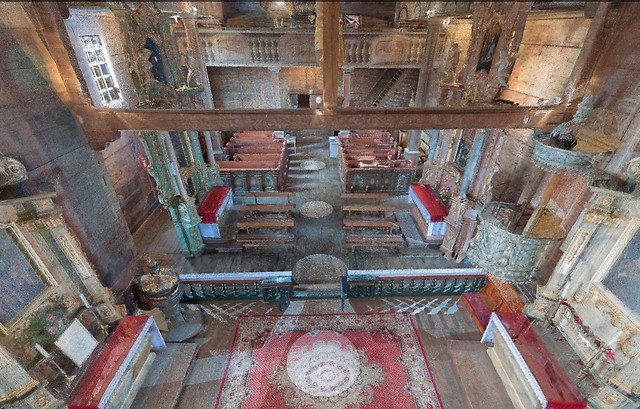 Kościół Wniebowzięcia Najświętszej Maryi Panny w Haczowie. Panorama pokazuje XIV- wieczny kościół oraz jego wnętrze. Obiekt został wpisany na listę światowego dziedzictwa UNESCO. Można zobaczyć w nim m.in. figurę Matki Bożej Bolesnej (gotycką Pietę), barokowy ołtarz, gotyckie portale, oraz kamienna chrzcielnica z XVI wieku.