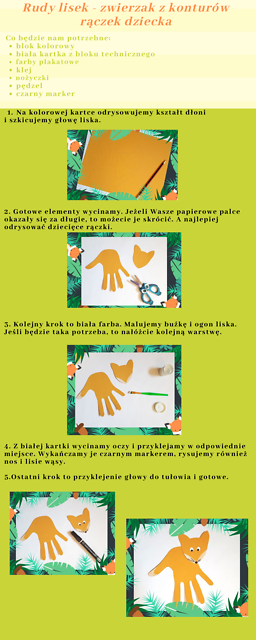 Dzisiejsza propozycja do zabawy to lisek z konturów ręki.