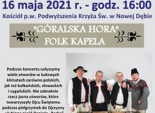 Zapraszamy w niedzielne popołudnie - 16 maja 2021 r. o godz. 16.00 na koncert zatytułowany „Nuty góralskie Świętego Jana Pawła II", który odbędzie w Kościele Parafialnym p.w. Podwyższenia Krzyża Świętego, w wykonaniu znakomitego folkowego zespołu „Góralska Hora”. Podczas koncertu usłyszymy wiele utworów w ludowych klimatach zarówno polskich, jak też bałkańskich, słowackich i cygańskich. Nie zabraknie rzecz jasna utworów, które towarzyszyły Ojcu Świętemu podczas pielgrzymek do Ojczyzny – ulubiona pieśń Papieża „Barka”, czy też „Góralu czy ci nie żal”, która zawsze śpiewana była w momencie, kiedy Jan Paweł II wyjeżdżał z ukochanych gór.