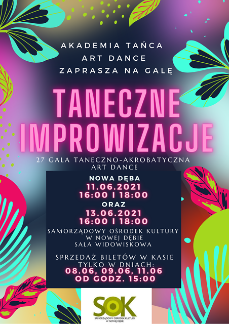 Samorządowy Ośrodek Kultury w Nowej Dębie zaprasza na 27 galę taneczno - akrobatyczną Art Dance pt. "Taneczne Improwizacje".