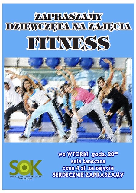 Samorządowy Ośrodek Kultury serdecznie zaprasza wszystkie dziewczęta na Fitness. Zajęcia odbywają się w każdy wtorek o godz. 20:00 w sali tanecznej SOK.