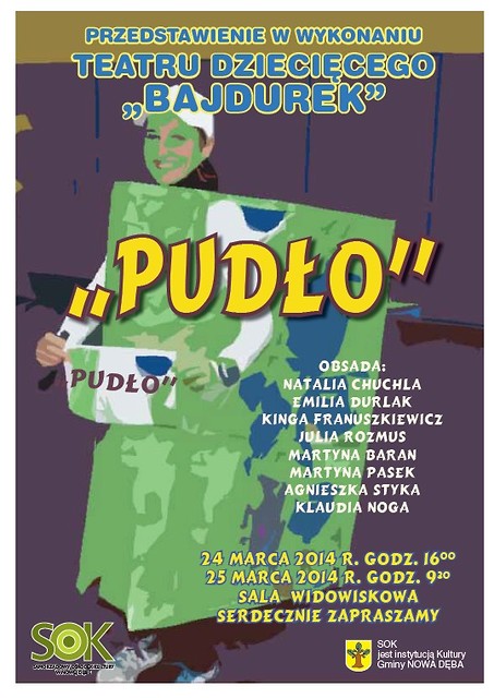 Teatr Dziecięcy „Bajdurek” działający w SOK serdecznie zaprasza na przedstawienie „PUDŁO”, które zostanie wystawione na deskach SOK w dniu 24 marca 2014 r. o godz. 16:00.