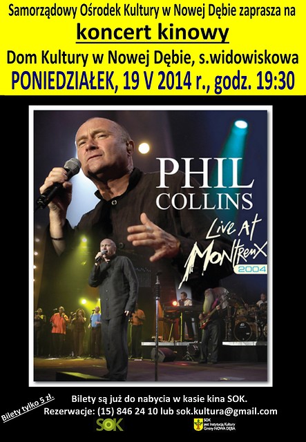 Samorządowy Ośrodek Kultury w Nowej Dębie serdecznie zaprasza na koncert kinowy PHIL COLLINS - Live At Montreux. Projekcja odbędzie się w poniedziałek, 19 maja 2014 r. o godz. 19:30.