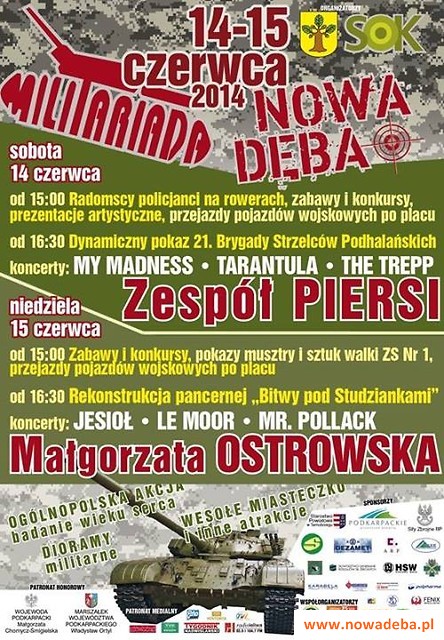 W trzeci weekend czerwca, północne Podkarpacie co roku zamienia się w poligon muzyczno-militarny. "Militariada 2014", która już szósty raz odbędzie się w dniach 14-15 czerwca br. w Nowej Dębie niewątpliwie wpisała się już w regionalny kalendarz imprez. Mimo, że impreza funkcjonuje dopiero 6 lat, jest coraz bardziej znana i ma ogólnopolski zasięg.