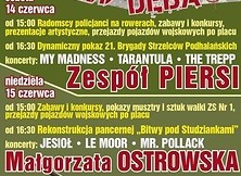 Oczywiście militaria to nie wszystko i w ramach koncertów zaprosiliśmy znane kapele, dopasowując muzykę do każdego widza. Będzie więc tak lubiane w Nowej Dębie reggae, rock i pop. Na scenie wystąpią takie gwiazdy jak: Zespół Piersi czy Małgorzata Ostrowska. Przy tym wszystkim będzie można dobrze zjeść i zabawić się w wesołym miasteczku.