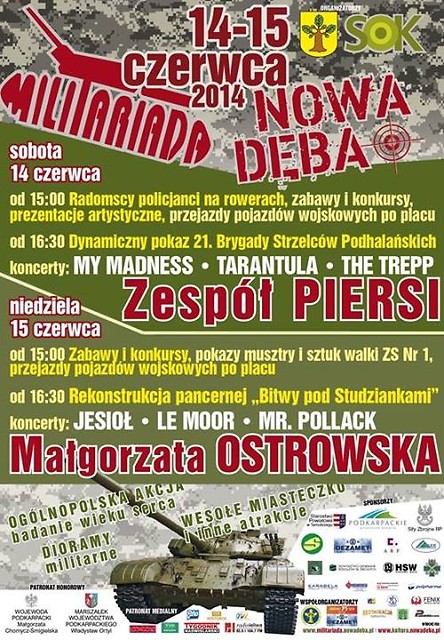 W trzeci weekend czerwca, północne Podkarpacie co roku zamienia się w poligon muzyczno-militarny. "Militariada 2014", która już szósty raz odbędzie się w dniach 14-15 czerwca br. w Nowej Dębie niewątpliwie wpisała się już w regionalny kalendarz imprez. Mimo, że impreza funkcjonuje dopiero 6 lat, jest coraz bardziej znana i ma ogólnopolski zasięg.