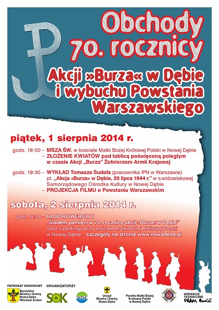 Burmistrz Miasta i Gminy Nowa Dęba w imieniu wszystkich organizatorów serdecznie zaprasza 1 sierpnia na obchody 70. rocznicy Akcji "Burza" w Dębie i wybuchu Powstania Warszawskiego.