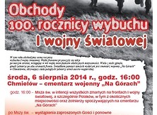 Burmistrz Miasta i Gminy Nowa Dęba, Samorządowy Ośrodek Kultury w Nowej Dębie oraz Parafia św. Stanisława zapraszają na obchody 100. rocznicy wybuchu I wojny światowej, które odbędą się 6 sierpnia 2014 r. na cmentarzu wojennym „Na Górach”. O godz. 16:00 odprawiona zostanie Msza św. w intencji wszystkich zmarłych na frontach I wojny światowej, a szczególnie Polaków, w tym z okolicznych miejscowości oraz żołnierzy spoczywających na cmentarzu „Na Górach”. Po Mszy św. wystąpią zaproszeni goście a następnie ponownie poświęcony zostanie odrestaurowany cmentarz „Na Górach”.