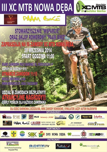 W dniu 28 września 2014 r. (tj. niedziela) odbędzie się III XC MTB Nowa Dęba, współorganizowane przez Samorządowy Ośrodek Sportu i Rekreacji w Nowej Dębie.