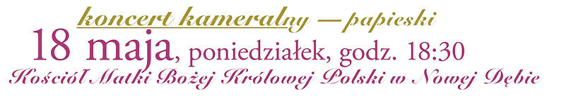 Poniedziałek, 18 maja 2015 r., godz. 18:30. Kościół Matki Bożej Królowej Polski w Nowej Dębie.