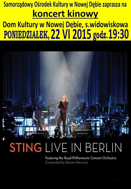 Zapraszamy na kinowy koncert STING „LIVE IN BERLIN”, który odbędzie się w poniedziałek, 22 czerwca o godz 19:30 w sali widowiskowej Samorządowego Ośrodka Kultury w Nowej Dębie.