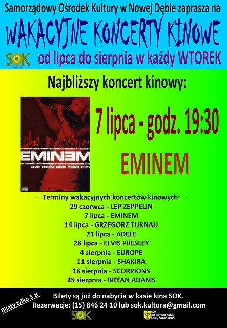 Samorządowy Ośrodek Kultury w Nowej Dębie serdecznie zaprasza na koncert kinowy EMINEM - LIVE FROM NEW YORK CITY. Projekcja odbędzie się we wtorek, 7 lipca 2015 r. o godz. 19:30.