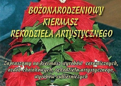 Zapraszamy 18 grudnia (piątek) 2015r. w godzinach od 14:00 do 18:00 na bożonarodzeniowy kiermasz rękodzieła artystycznego, który odbędzie się na holu Samorządowego Ośrodka Kultury. Będzie można zakupić piękne, niepowtarzalne podarunki dla najbliższych, ozdoby choinkowe, ręcznie robione stroiki, wyroby cukiernicze i inne świąteczne akcesoria. Odwiedzający kiermasz będą mieli okazję poznać twórców tych niezwykłych wyrobów artystycznych.