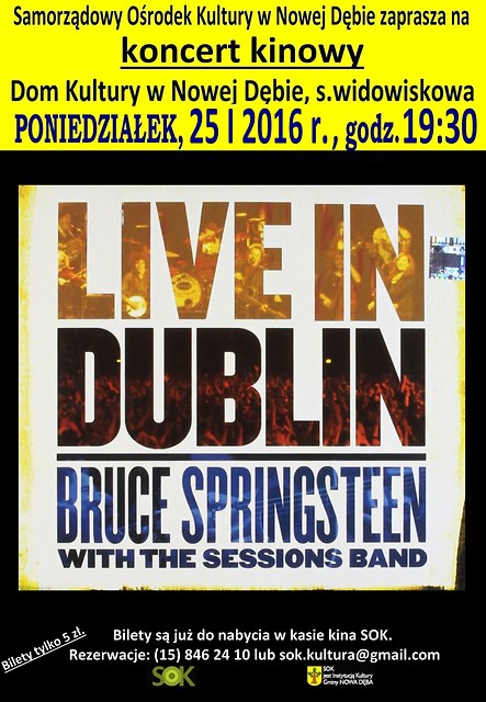 Samorządowy Ośrodek Kultury w Nowej Dębie serdecznie zaprasza na koncert kinowy BRUCE SPRINGSTEEN. Projekcja odbędzie się w poniedziałek, 25 stycznia 2016 r. o godz. 19:30.