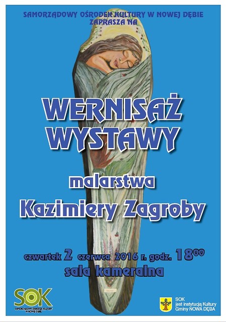 Samorządowy Ośrodek Kultury w Nowej Dębie zaprasza na otwarcie wystawy malarstwa p. Kazimiery Zagroby, które odbędzie się w sali kameralnej 2 czerwca 2016 r. o godz. 18:00.