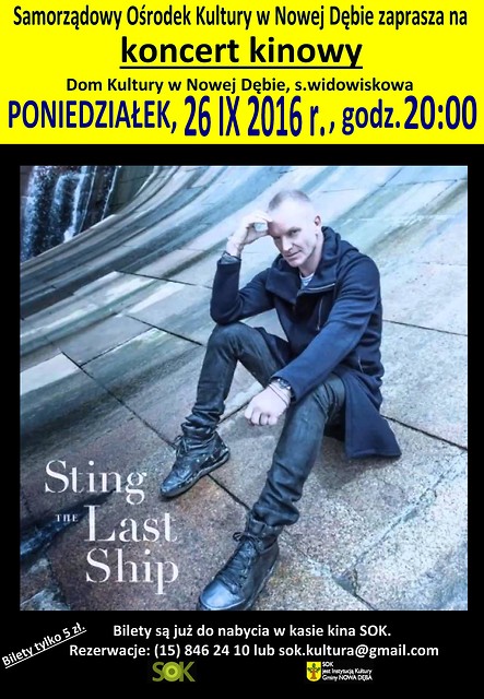 Samorządowy Ośrodek Kultury w Nowej Dębie serdecznie zaprasza na koncert kinowy STING. Projekcja odbędzie się w poniedziałek, 26 września 2016 r. o godz. 20:00.