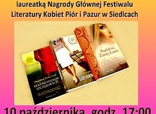 Biblioteka Publiczna w Nowej Dębie - w ramach Dyskusyjnego Klubu Książki - zaprasza na spotkanie autorskie z Magdaleną Zimny – Louis, które odbędzie się 10 października 2016 r. o godz. 17:00 w sali kameralnej Samorządowego Ośrodka Kultury. Pochodząca z Rzeszowa pisarka jest autorką takich książek jak: „Ślady hamowania”, „Pola”, „Kilka przypadków szczęśliwych” oraz ,,Zaginione".