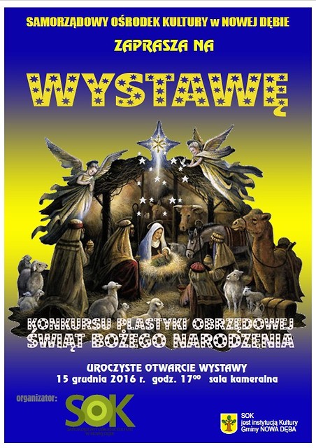Samorządowy Ośrodek Kultury w Nowej Dębie serdecznie zaprasza wszystkich biorących udział w konkursie plastycznym „Plastyki Obrzędowej Świąt Bożego Narodzenia” 2016 na podsumowanie, które odbędzie się 15 grudnia o godzinie 17:00 w sali kameralnej.