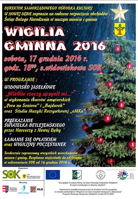 Serdecznie zapraszamy wszystkich mieszkańców miasta i gminy do kultywowania wieloletniej tradycji wspólnego obchodzenia tego szczególnego święta. Darmowe wejściówki do odebrania w sekretariacie SOK od 14 grudnia 2016 r.