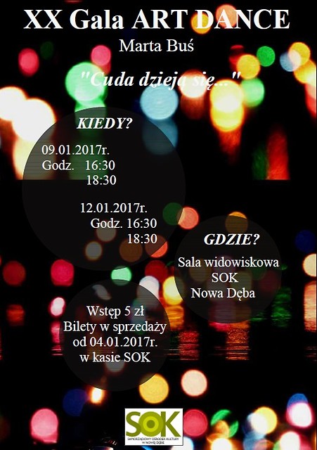 Samorządowy Ośrodek Kultury oraz Akademia Tańca Art Dance Marta Buś serdecznie zapraszają na XX jubileuszową Galę Taneczną, która odbędzie się pod hasłem ,,Cuda dzieją się” .