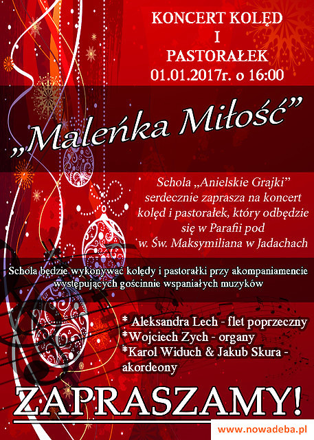 Już w najbliższą niedzielę 1 stycznia 2017 (Nowy Rok) w Kościele pw. Św. Maksymiliana odbędzie się III Koncert Kolęd i Pastorałek. Początek koncertu o godzinie 16.00.
