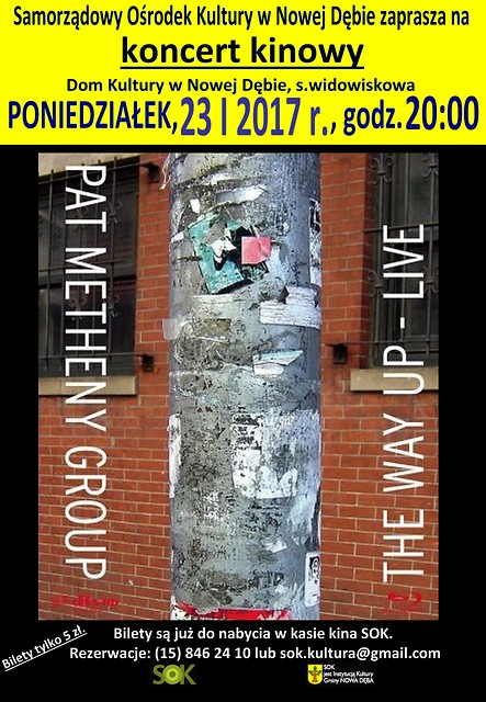 Samorządowy Ośrodek Kultury w Nowej Dębie serdecznie zaprasza na koncert kinowy PAT METHENY GROUP. Projekcja odbędzie się w poniedziałek, 23 stycznia 2017 r. o godz. 20:00.