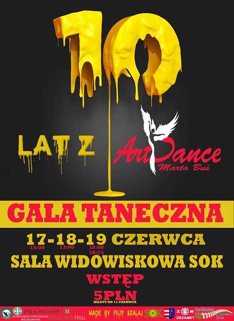 Samorządowy Ośrodek Kultury oraz Akademia Tańca Art Dance Marta Buś serdecznie zapraszają na Jubileuszową Galę Taneczną z okazji 10-lecia działalności szkoły. Pokazy odbędą się w następujących terminach: