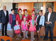 Po przekazaniu sobie wzajemnych upominków i zrobieniu zdjęć pamiątkowych, przyszedł czas na sympatyczną dyskusję, w trakcie której przedstawicielki zespołu dzieliły się swoimi wrażeniami z sierpniowych mistrzostw świata mażoretek w Opolu. Pani trener Małgorzata Gronek opowiadała o dumie towarzyszącej w momencie, kiedy jej podopieczne stały na najwyższym stopniu podium i słuchały granego dla nich „Mazurka Dąbrowskiego”. Rozmowa dotyczyła również wspomnień z zawodów i występów, a także wiążących się z tym anegdot i ciekawych historii.