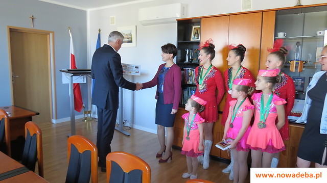 W piątek, 7 października, odbyło się spotkanie, na którym burmistrz Wiesław Ordon, wraz z zastępcą Leszkiem Mirowskim, gościł w urzędzie przedstawicielki zespołu Mażoretek „Diament” z Chmielowa, na czele z panią prezes Stowarzyszenia Przyjaciół Chmielowa „Chmielowianie” (pod skrzydłami którego działa zespół) Anną Koper i panią trener Małgorzatą Gronek. Wizyta była okazją do wręczenia vouchera, który jest wyrazem uznania dla sukcesów grupy oraz stojących za nimi wielu godzin treningów i ciężkiej pracy.