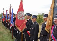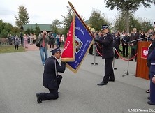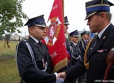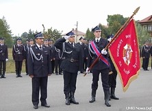 Zgodnie ze strażacką ceremonią przekazano sztandar druhom, którzy dumnie zaprezentowali go w całej okazałości uczestnikom uroczystości.