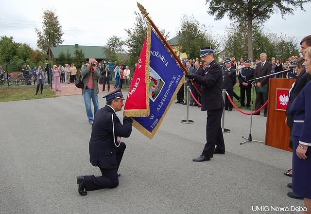 Ten szczególnie ważny dzień dla strażaków z Ochotniczej Straży Pożarnej w Alfredówce rozpoczął się uroczystą, polową Mszą Świętą celebrowaną przez Ks. prałata Antoniego Saneckiego – Proboszcza miejscowej Parafii, Ks. Jana Kaszewicza – kapelana strażaków miasta Tarnobrzega, Ks. Eugeniusza Nycza – kapelana strażaków OSP Gminy Nowa Dęba. Msza Św., jak nakazuje tradycja podobnych uroczystości, odprawiona była w intencji wszystkich strażaków OSP Alfredówka, tych, którzy obecnie pełnią społeczną służbę i tych, którzy odeszli już z jej szeregów. Podczas uroczystości Mszy Św. został również poświęcony sztandar, który podczas części oficjalnej został przekazany w pieczę strażaków. Sztandar przyznawany jednostkom straży pożarnej jest symbolem męstwa, odwagi i poświęcenia w trudnej i niebezpiecznej służbie ratowania życia, zdrowia oraz mienia społeczeństwa przed pożarami, klęskami żywiołowymi i innymi zagrożeniami. Sztandar jest ponadto wyrazem uznania i wdzięczności społeczeństwa za ofiarną i pełną poświęcenia społeczną służbę. Liczny udział mieszkańców Alfredówka i zaproszonych gości świadczy o sympatii, jaką darzą strażackie formacje.