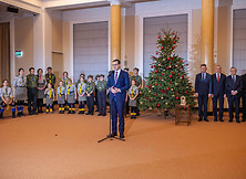 Dużym wydarzeniem dla harcerzy z małej wspólnoty była wizyta w Kancelarii Premiera - Betlejemskie Światło Pokoju wręczono premierowi Mateuszowi Morawieckiemu i Radzie Ministrów, w tym naszemu rodakowi ministrowi Rafałowi Weberowi ze Stalowej Woli. Po krótkim kolędowaniu w kancelarii premiera harcerze udali się do Sejmu Rzeczypospolitej Polskiej, gdzie przekazali Światło marszałek Elżbiecie Witek. Wysłuchali ciepłych słów o istocie tych świąt i podziękowania za to urocze spotkanie. Szefom tych dwóch instytucji harcerze przekazali bombki z Firmy Biliński z Nowej Dęby.