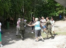 Licznie przybyli goście z zaprzyjaźnionych ŚDS-ów oraz Domu Pomocy Społecznej w Nowej Dębie mogli podziwiać sprzęt wojskowy oraz indywidualne wyposażenie żołnierzy, obejrzeć pokaz sztuk walki, zapoznać się z zasadami udzielania pierwszej pomocy, wziąć udział we wspólnym graniu i śpiewaniu z żołnierzami, potańcówce, a także posilić się pysznym żurkiem oraz kiełbaską z ogniska. Wszystko to odbyło się przy "akompaniamencie" odgłosów świszczących kul, wybuchających granatów, wystrzałów broni palnej oraz ryku silników ciężkich pojazdów bojowych, gdyż równolegle do imprezy realizowano ćwiczenia wojskowe. Sam wjazd w głąb poligonu i podziwianie jego infrastruktury był dla uczestników nie lada atrakcją.