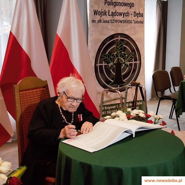 Uroczystość zakończona została zrobieniem zdjęć grupowych, a także zdmuchnięciem świeczek urodzinowych przez Jubilatkę. Pani Maria życzliwie i z wielką skromnością opowiadała każdemu uczestnikowi wydarzenia historie ze swojego życia, oraz z życia pułkownika Walentego Chodzińskiego. Jej losy przeplatały ciężkie lata wojny, które częściowo spędziła w Niemczech na robotach oraz trudne lata powojenne. Z wielką sympatią wyrażała się także o naszym mieście, w którym zamieszkała wraz z mężem od 1974 roku, gdzie wybudowali swój dom, a ona dbała o jego wnętrze i otoczenie. "Życia nauczyłam się w Dębie" - powiedziała pani Maria.