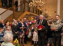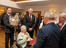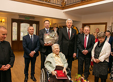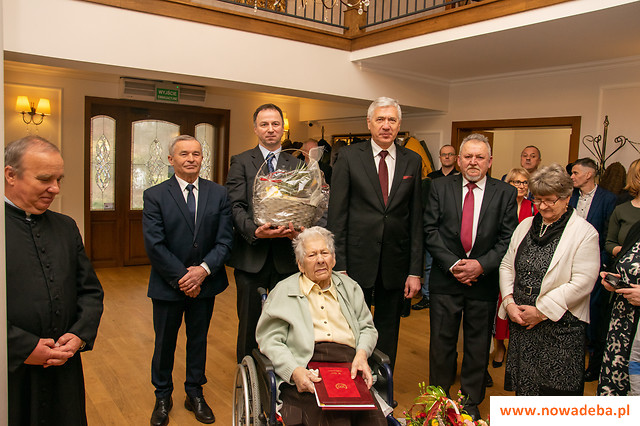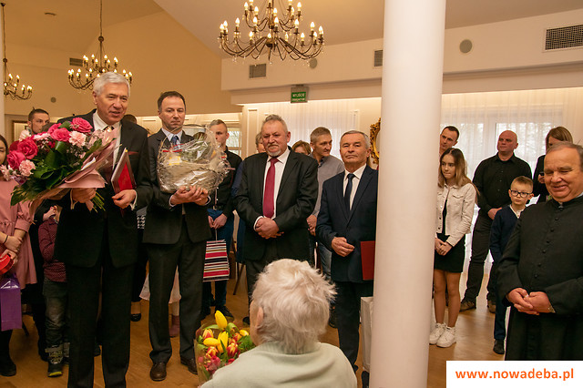 W uroczystościach urodzinowych pani Stefanii Rakoczy władze samorządowe reprezentowali: burmistrz miasta i gminy Nowa Dęba Wiesław Ordon, radny Rady Miejskiej Stanisław Skimina, sołtys Chmielowa Jan Kotulski, a także kierownik Urzędu Stanu Cywilnego Ryszard Rzemień.