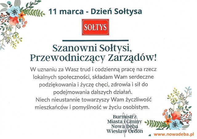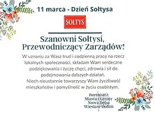 11 marca w Polsce obchodzony jest Dzień Sołtysa. W tym dniu nadarza się doskonała okazja by podziękować sołtysom i przewodniczącym zarządów osiedli za ich codzienną pracę, a także zwrócić uwagę na rolę, którą pełnią na rzecz swoich lokalnych społeczności. Czas poświęcony swoim mieszkańcom, współpraca z władzami samorządowymi gminy, to postawa, która budzi powszechny szacunek i uznanie. Sołtysi wyzwalają potencjał społeczny poprzez współpracę z organizacjami działającymi na terenie poszczególnych miejscowości.
