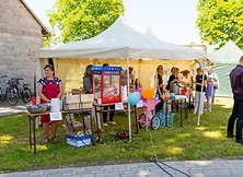 Uczniowie naszej szkoły także wnieśli swój wkład w przygotowanie rodzinnego pikniku. Zaoferowali swą pomoc przy malowaniu buziek, sprzedawali balony i częstowali gości lemoniadą. Swoje stoisko podczas pikniku miała również animatorka – pani Monika Kliś wraz ze swoją ekipą pod nazwą Hocki - Klocki.