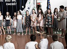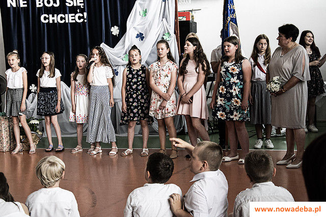 Głos zabrali także przedstawiciele rady rodziców i rady pedagogicznej, którzy również dziękowali dyrektor Głowackiej za pełnienie tej funkcji oraz za zapewnianie jak najlepszych warunków dzieciom uczęszczającym do szkoły. Padły życzenia wspaniałych dni w życiu osobistym, niezawodnego zdrowia, czasu na realizację własnych pasji i wytchnienia po latach wytężonej pracy. Dyrektor otrzymała kwiaty i prezent ufundowany przez rodziców uczniów SP w Jadachach. Ostatnim punktem uroczystości było wystąpienie młodzieży szkolnej, która dziękowała pani dyrektor oraz skierowała życzenia w jej stronę. Odśpiewana została piosenka „Dni, których nie znamy”, do której śpiewania włączyli się wszyscy zgromadzeni w sali gimnastycznej.